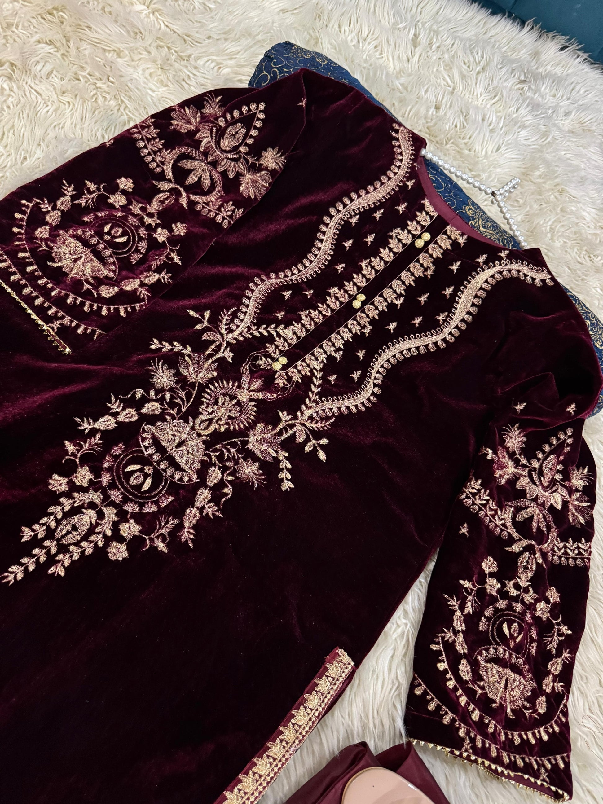 Expertly tailored and stylish, AVERNA is crafted with luxurious Valvet fabric, providing comfortable wear. The elegant embossed long shirt and detailing add a touch of sophistication. Paired with a Kattan silk pent, this outfit exudes class and timeless appeal.