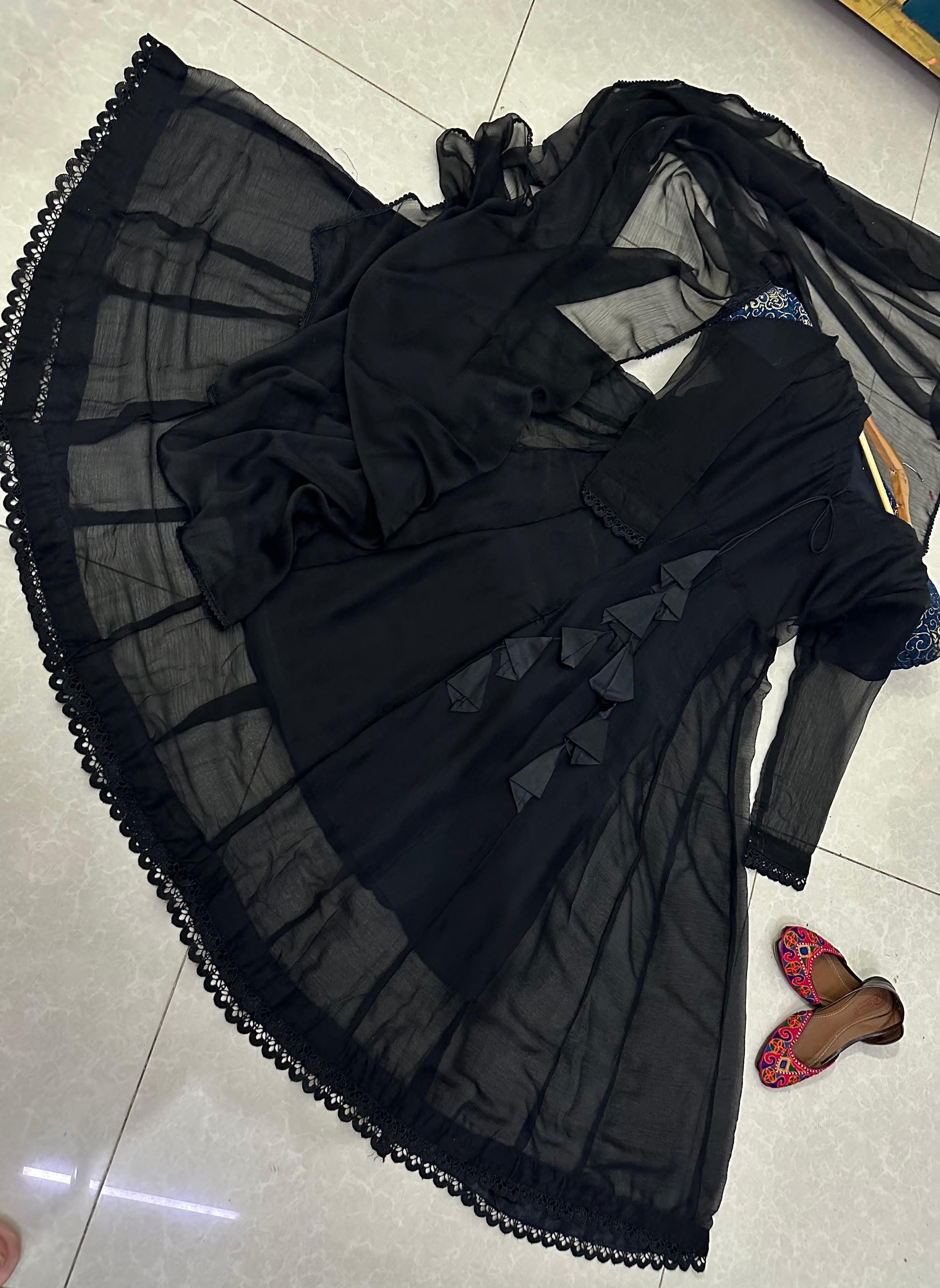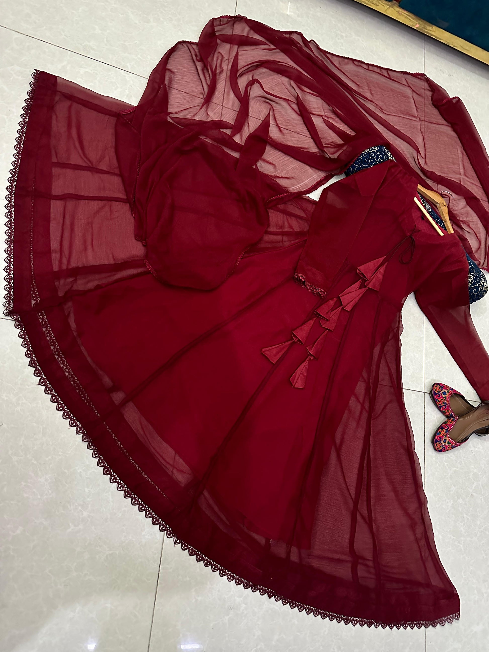 AYRA is a Chiffon Maxi dress that comes with a matching Chiffon Dupta. The lightweight and flowy fabric provides comfort and elegance, making it perfect for any occasion. The ensemble offers versatility and style, making it a must-have in your wardrobe.