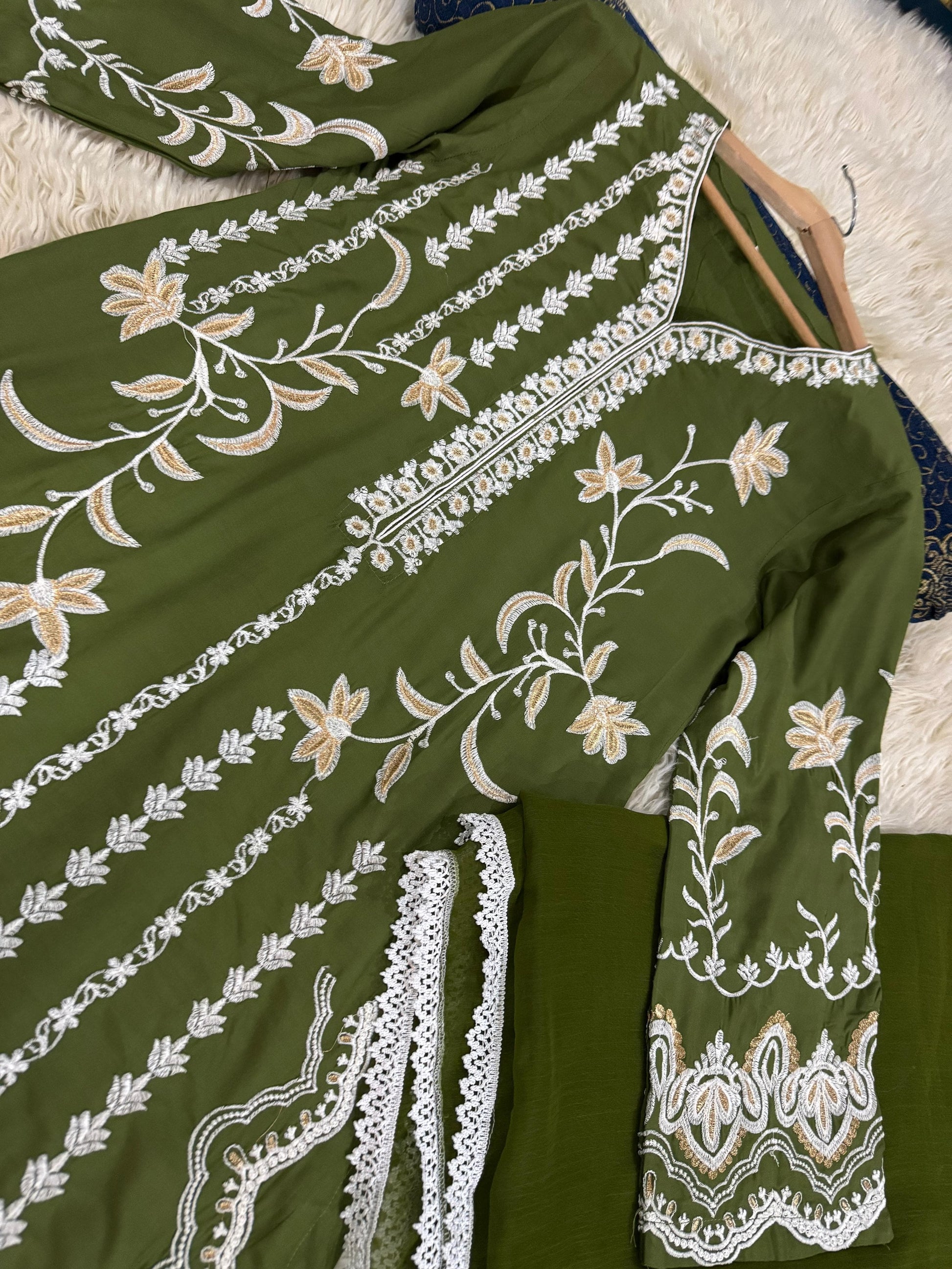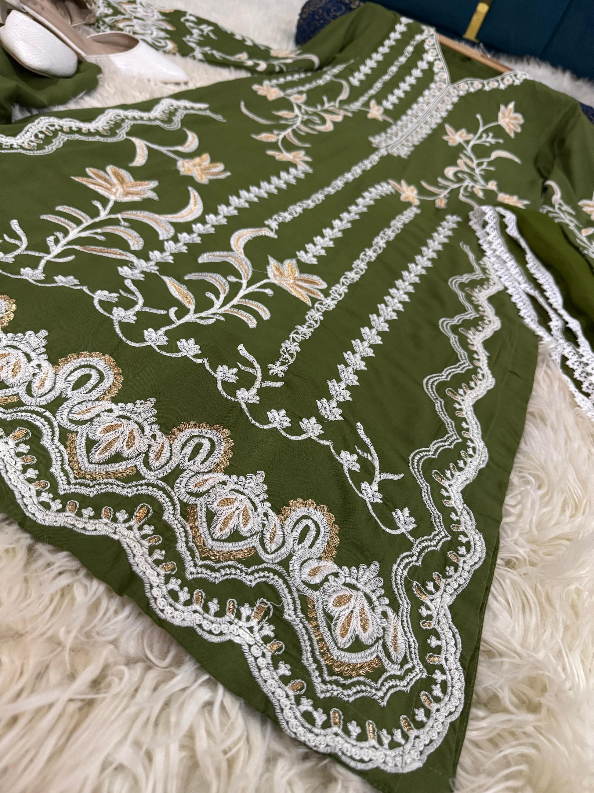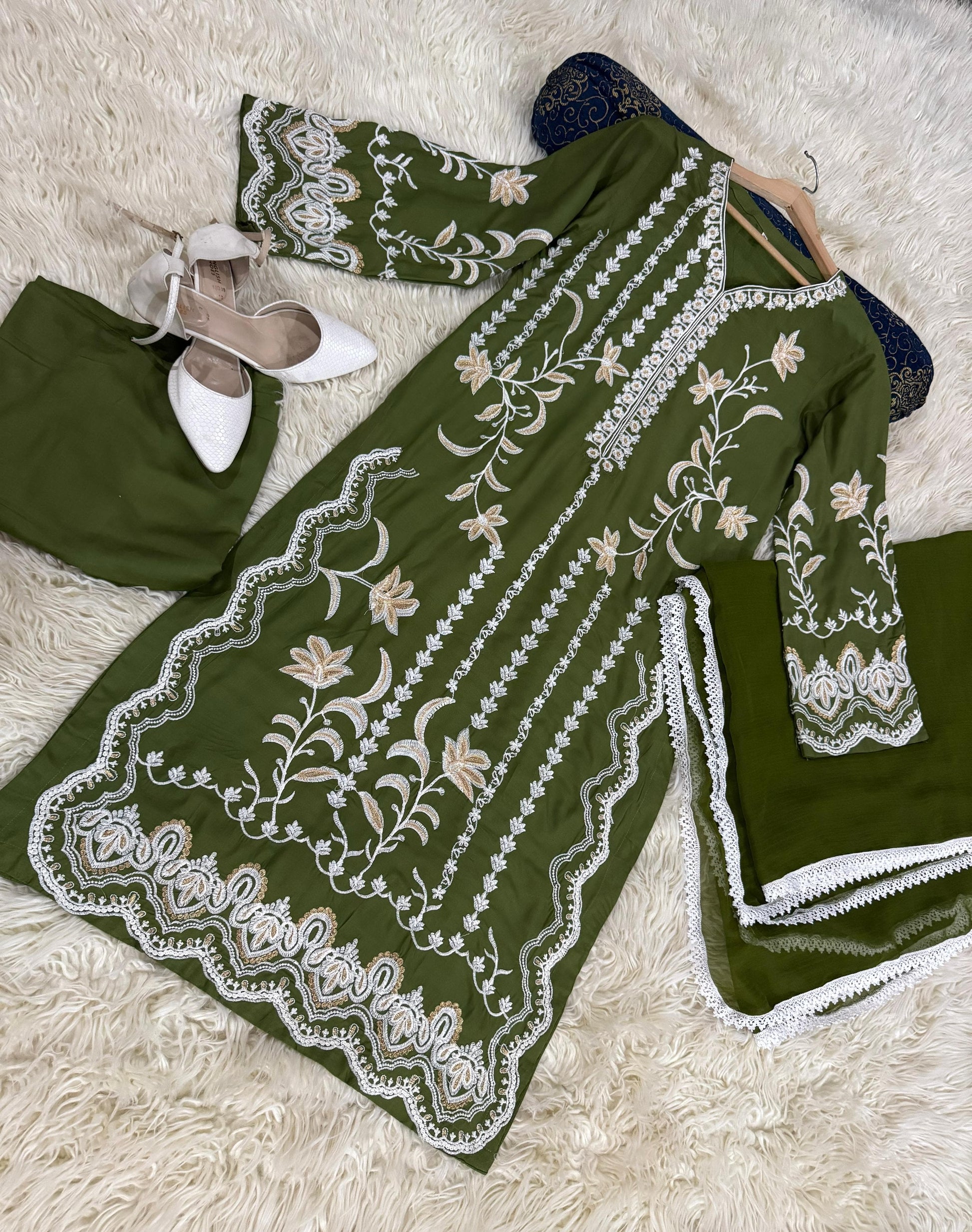Introducing JASMINE, our luxurious Winter collection featuring 3pc causal wear. Keep warm with the winter stuff fabric from China, enhanced with elegant stone embroidery and delicate thready with tilla details. Elevate your style with this must-have for the season.