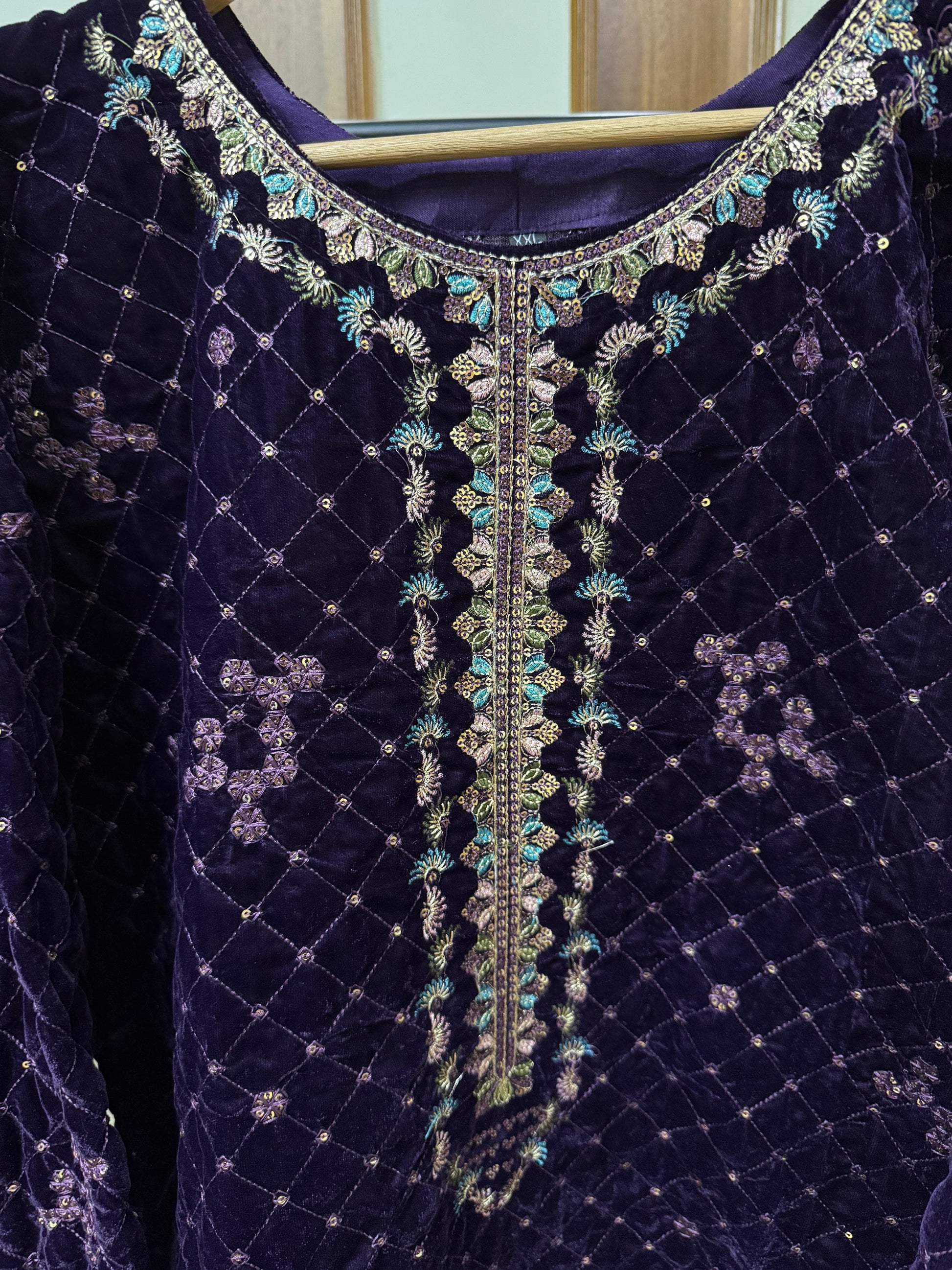 Expertly tailored and stylish, AVERNA is crafted with luxurious Valvet fabric, providing comfortable wear. The elegant embossed long shirt and detailing add a touch of sophistication. Paired with a Kattan silk pent, this outfit exudes class and timeless appeal.