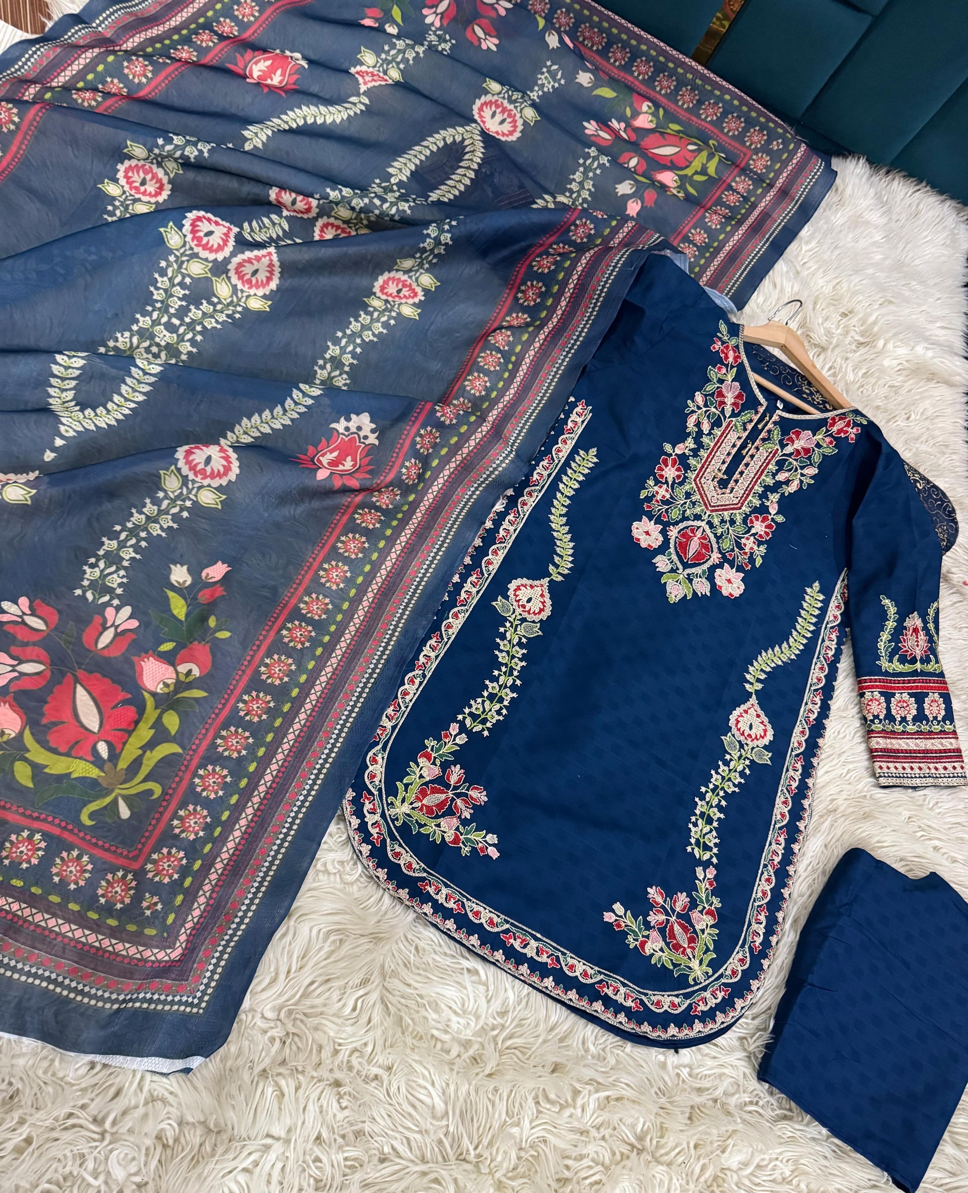 Discover the exquisite craftsmanship of Chikenkari with ZAIB. This stunning long length, digitally printed shirt in Lawn fabric is elevated by a delicate Chiffon Dupatta. Bring timeless elegance to your wardrobe with ZAIB.