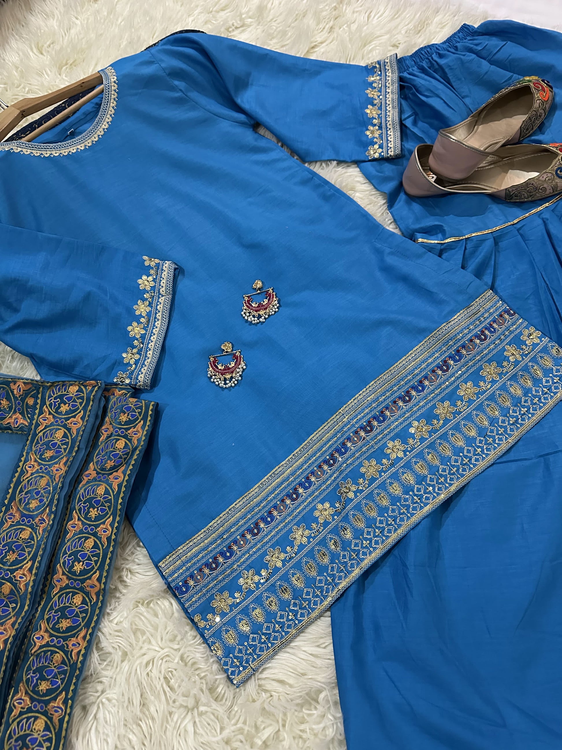 Introducing SHAHNOOR, the perfect blend of elegance and style. This new arrival features a sequin-embellished lawn shirt, complemented by a delicate lawn gharara and a 4-sided block printed dupatta. Stay on-trend this Eid with SHAHNOOR's #eidpret #lawnpret collection. Upgrade your wardrobe with the perfect combination of traditional and modern aesthetics.