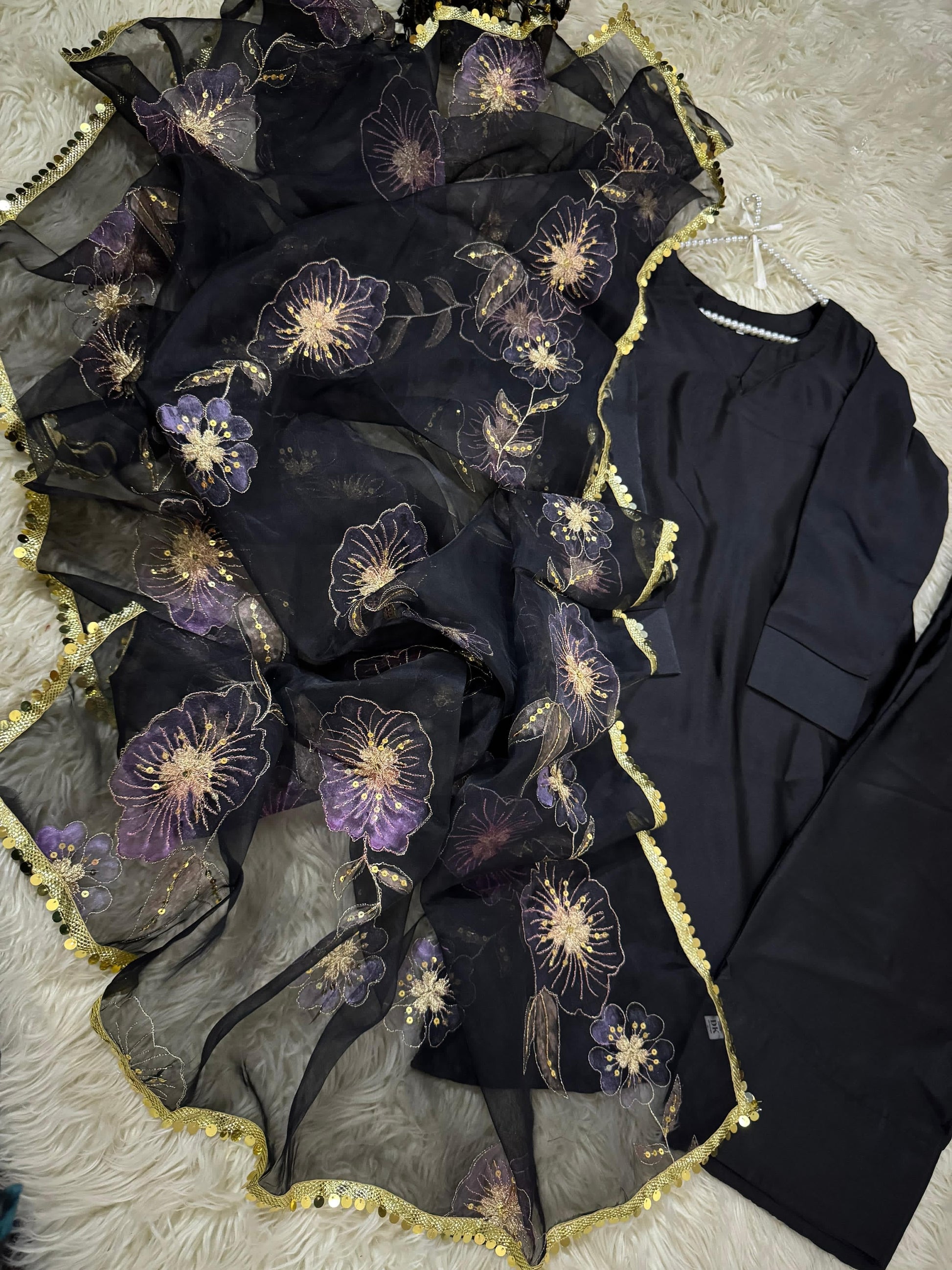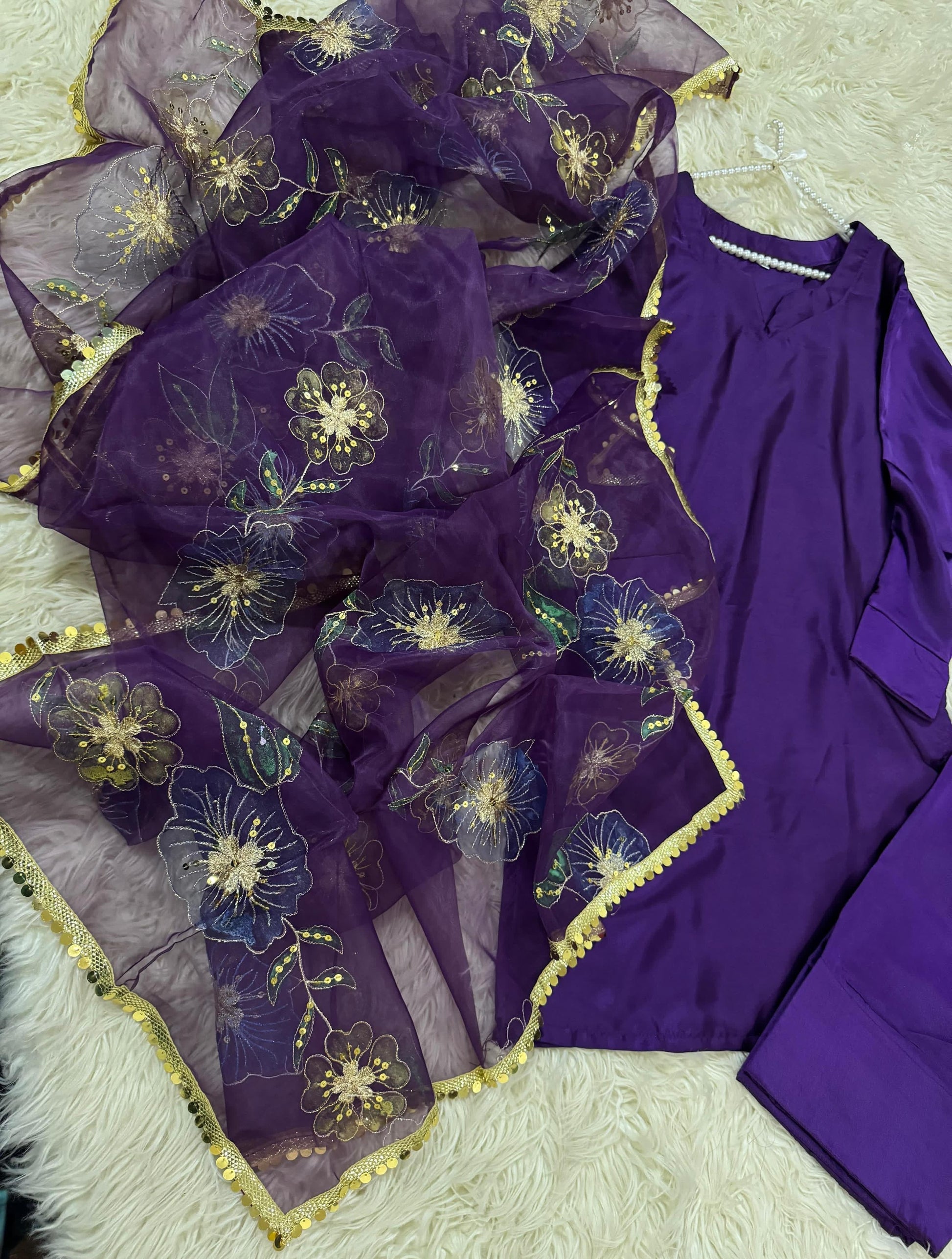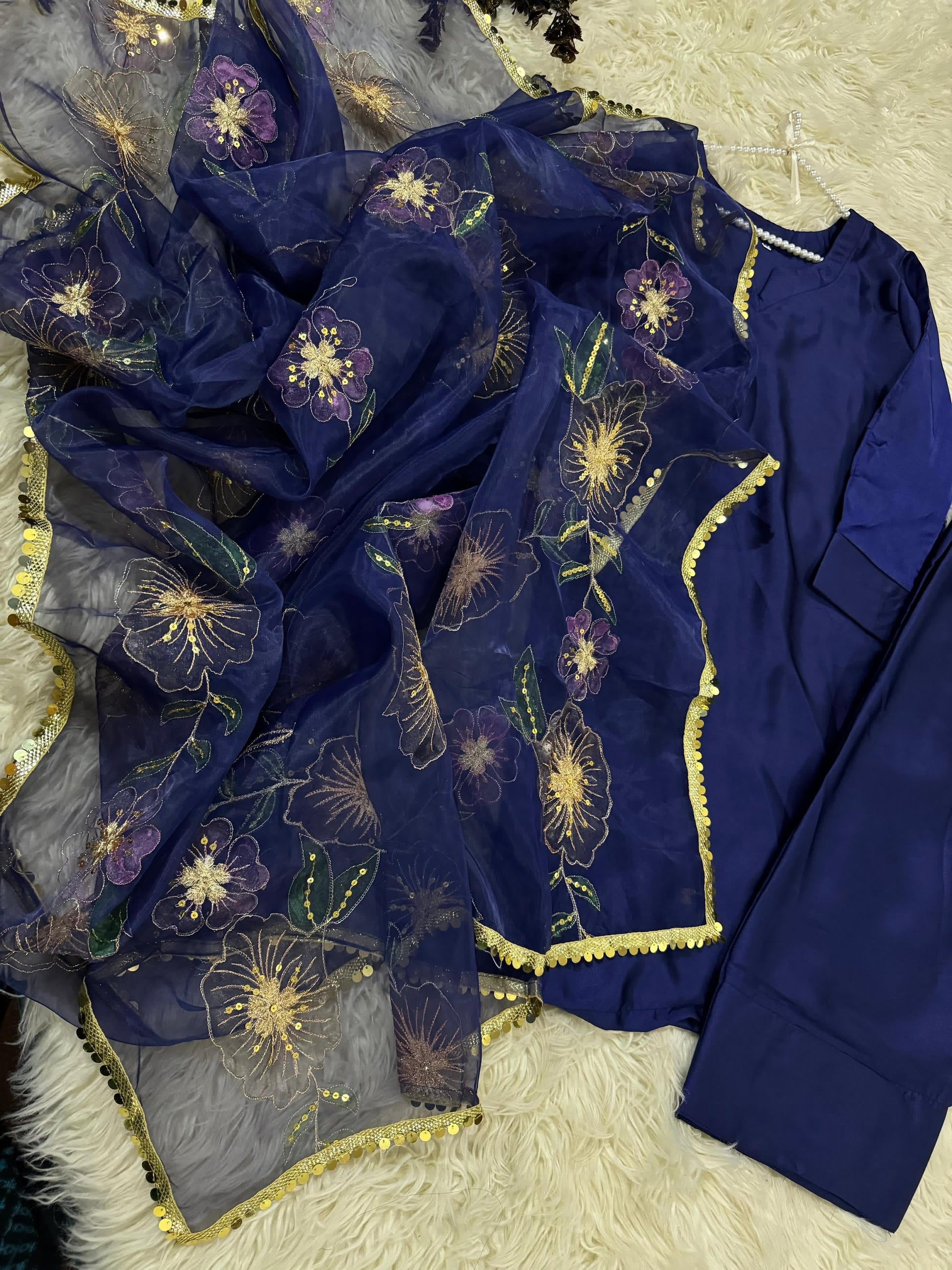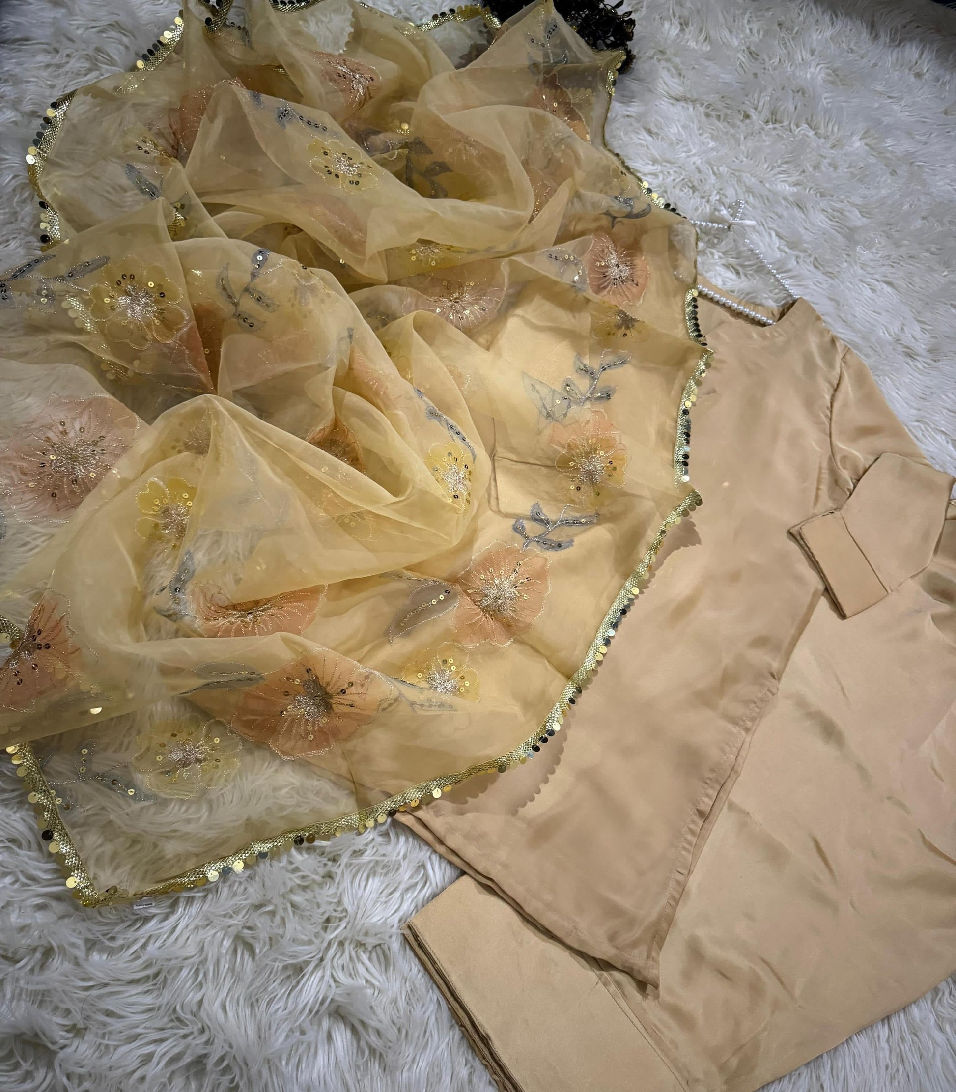 Experience luxury with SHEHLA's rawsilk shirt and pent set, complete with a stunning shamooz silk shawl. Adorned with delicate mirror pearls, this elegant ensemble exudes sophistication and style. Perfect for any formal occasion, SHEHLA is the epitome of high-end fashion.