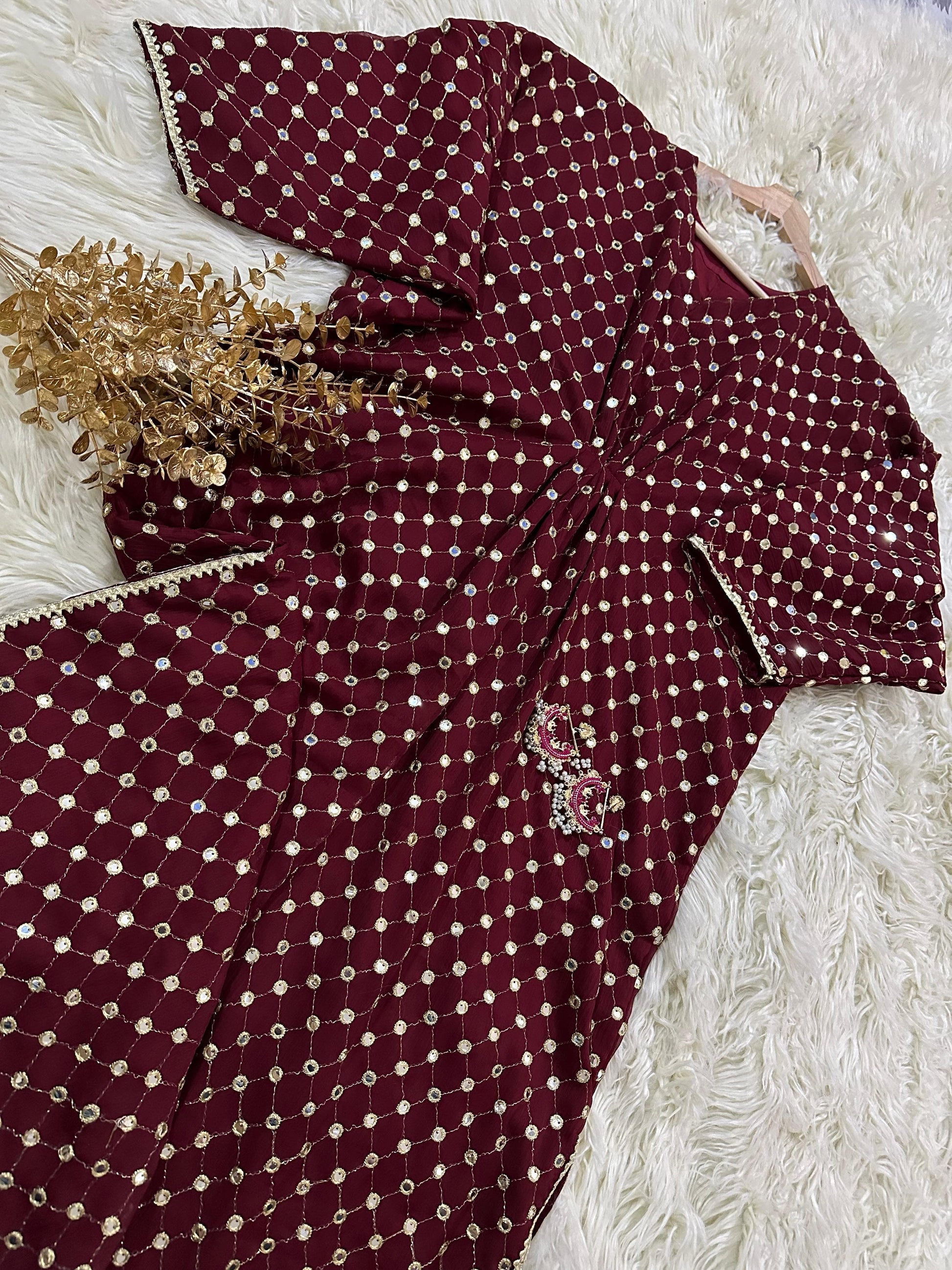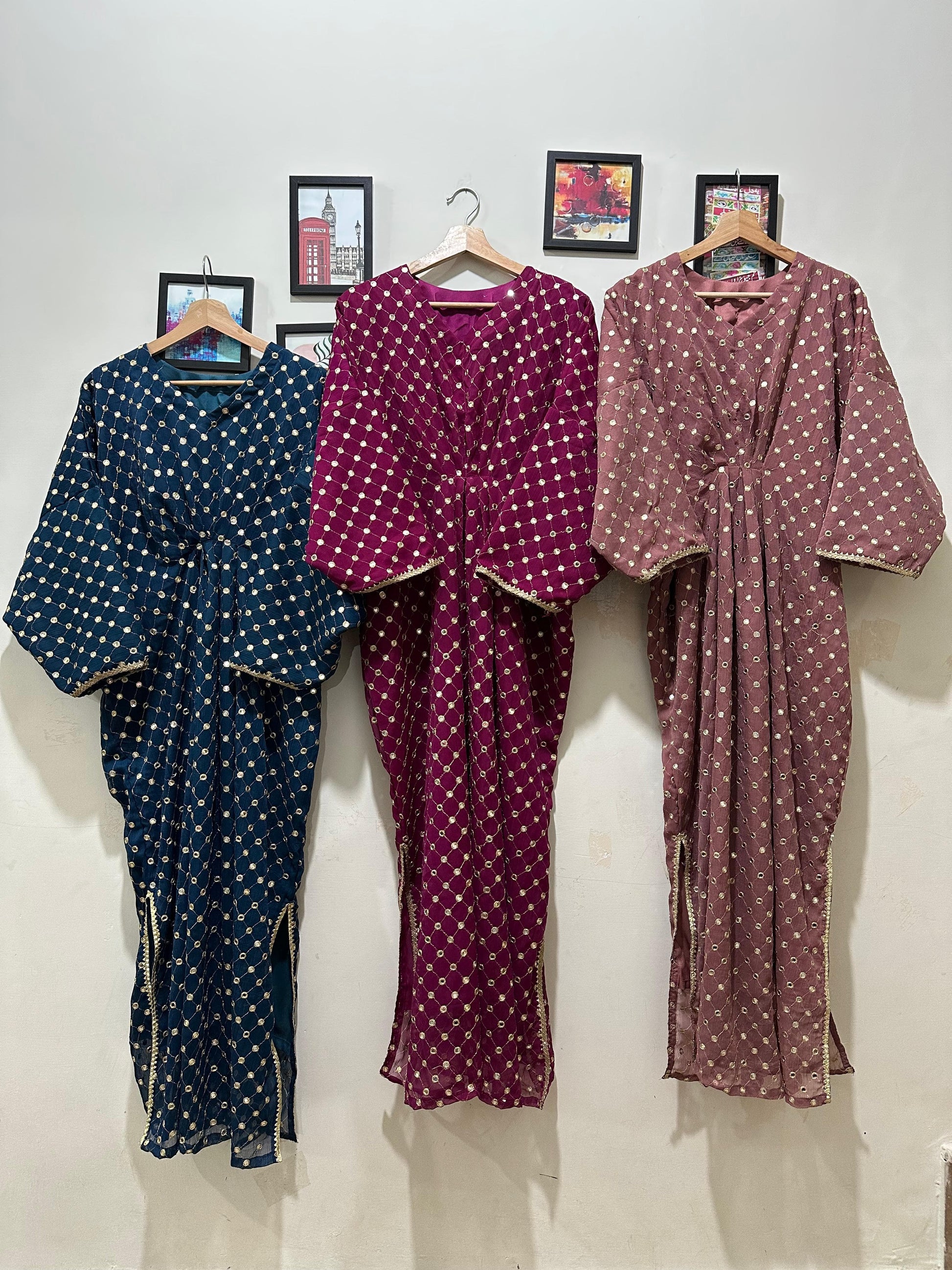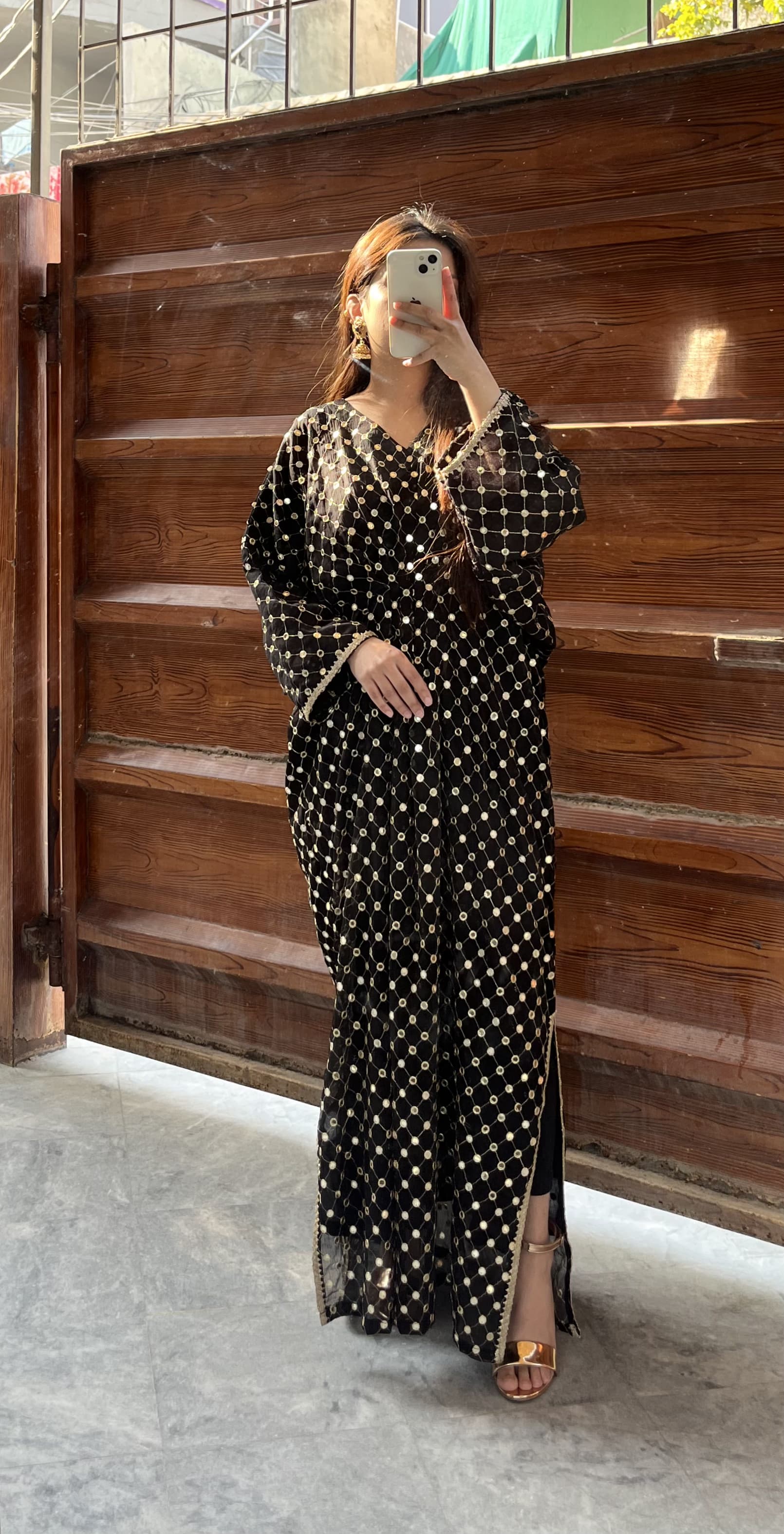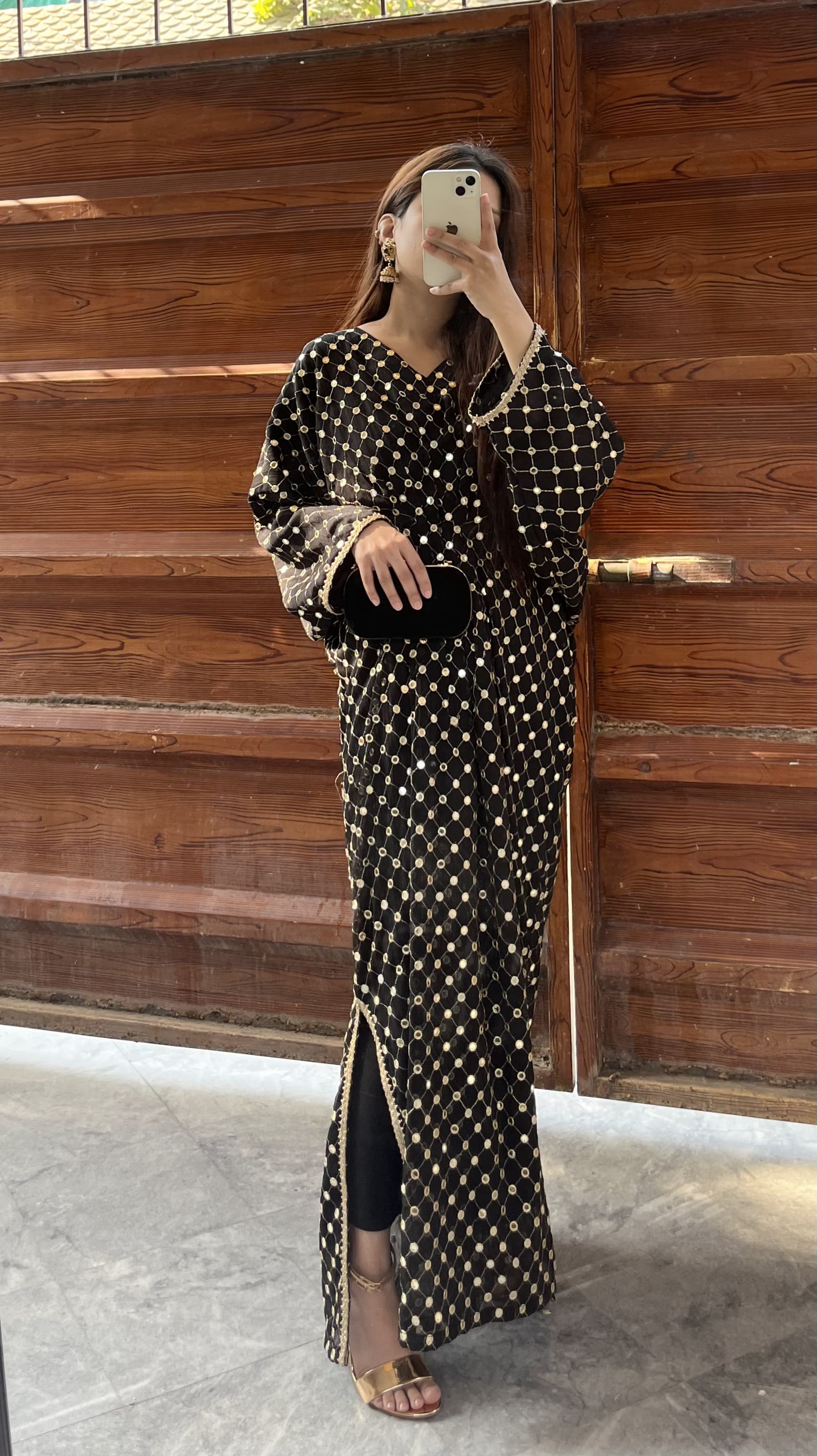 Add a touch of glamour and elegance to your wardrobe with SHIFA - the perfect kaftan featuring intricate 9mm sequin embroidery on both the front and back, made from high-quality chiffon fabric. Make a statement with style and comfort.