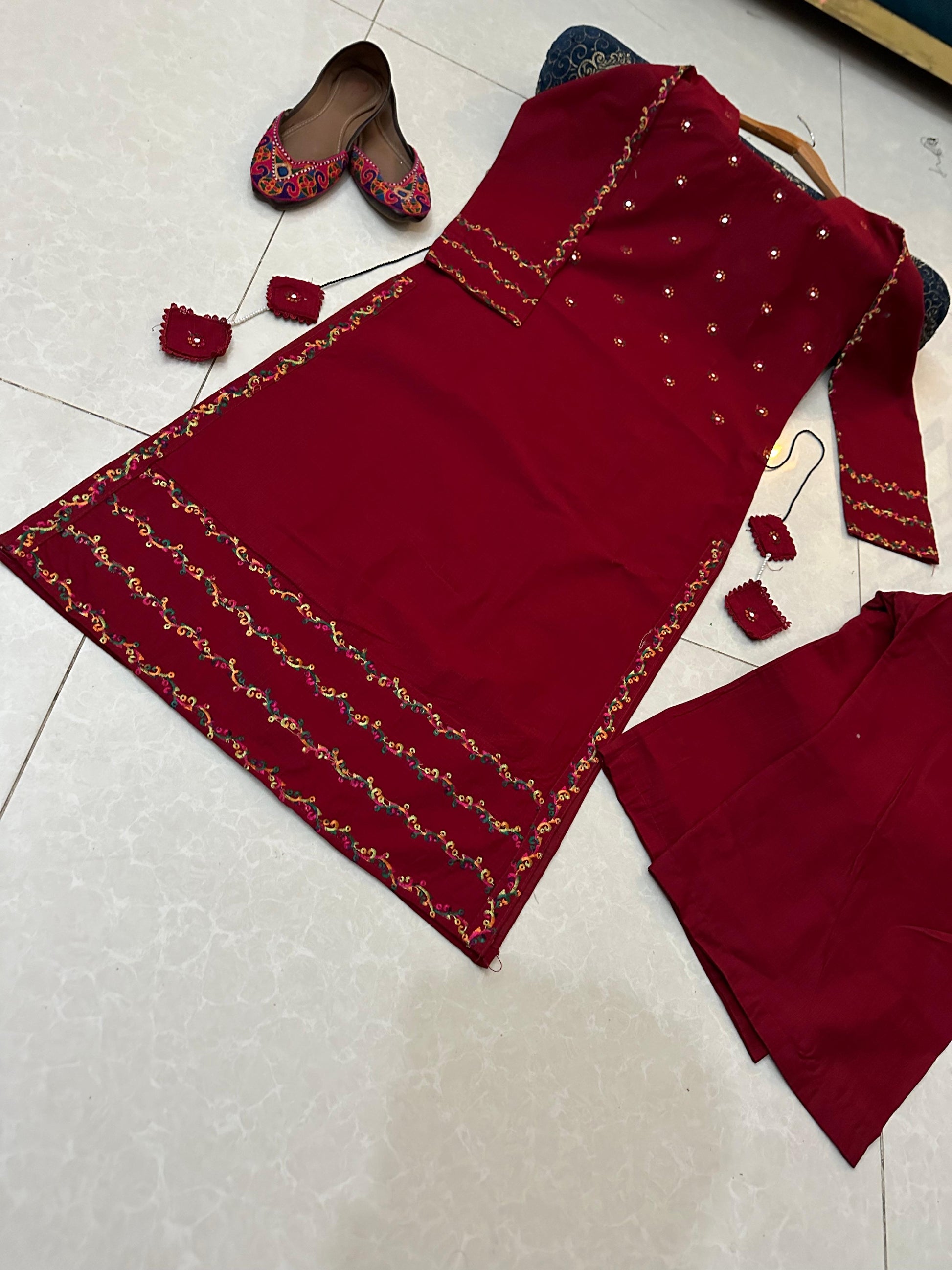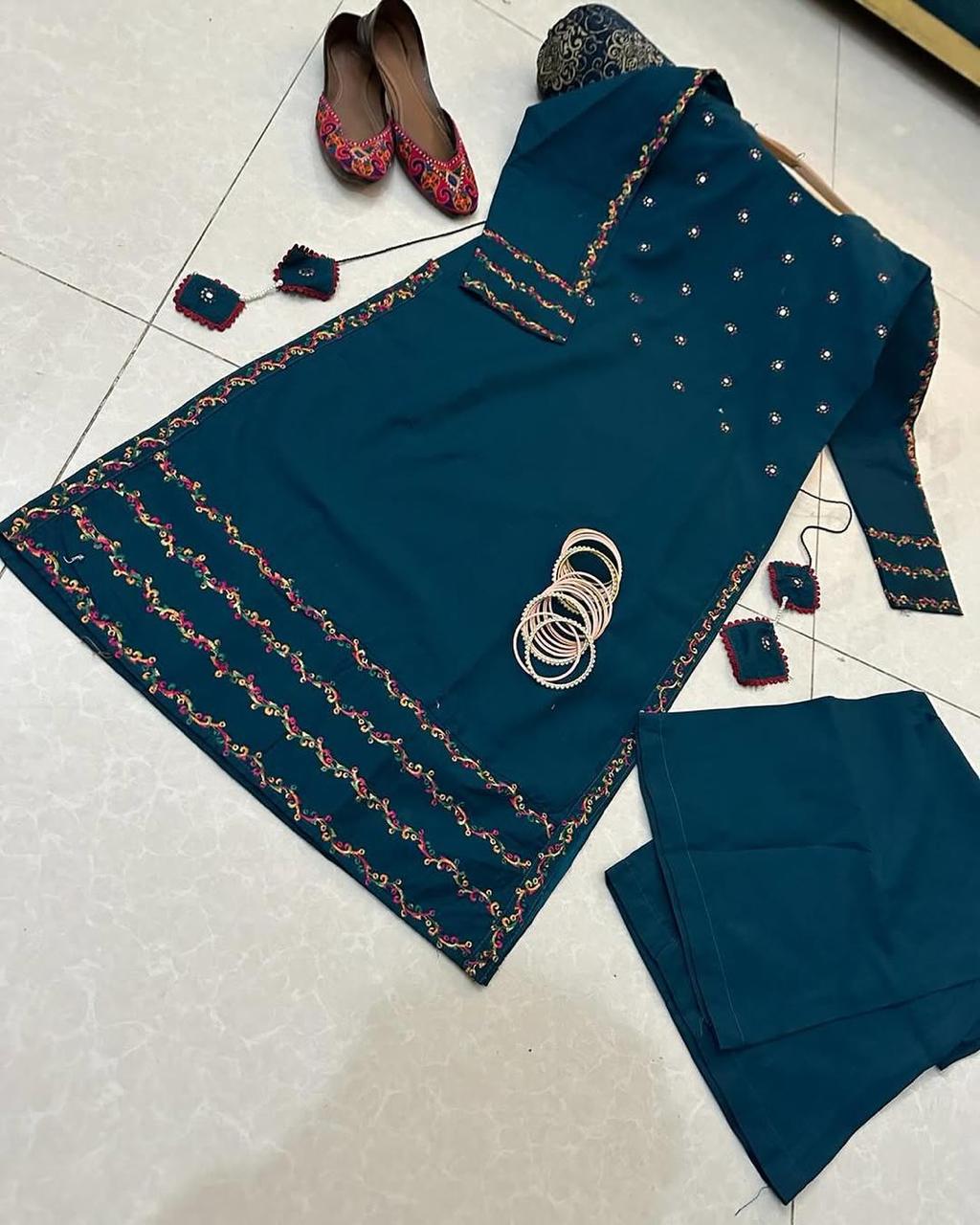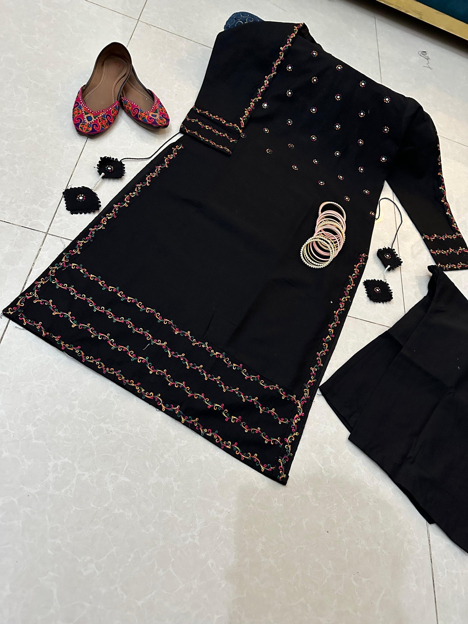 Indulge in luxury with ZILE HUMA's Doria Cotton Lawn ensemble. Made from branded, heavy embossed fabric with intricate 9mm sequence work, this set of shirt and plazo provides the perfect blend of comfort and style. Elevate your wardrobe with this elegantly crafted outfit.